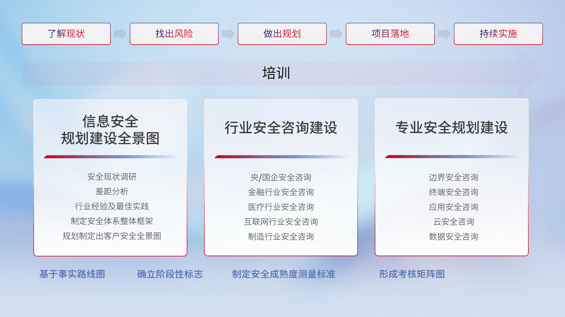 梳理客户信息安全现状调研、、差距分析结果,,,,结合行业先进经验及最佳实践,,,,制订客户的信息安全管控体系总结架构,,最终形成一个完整的客户信息安全规划与建设的全景图。。。。