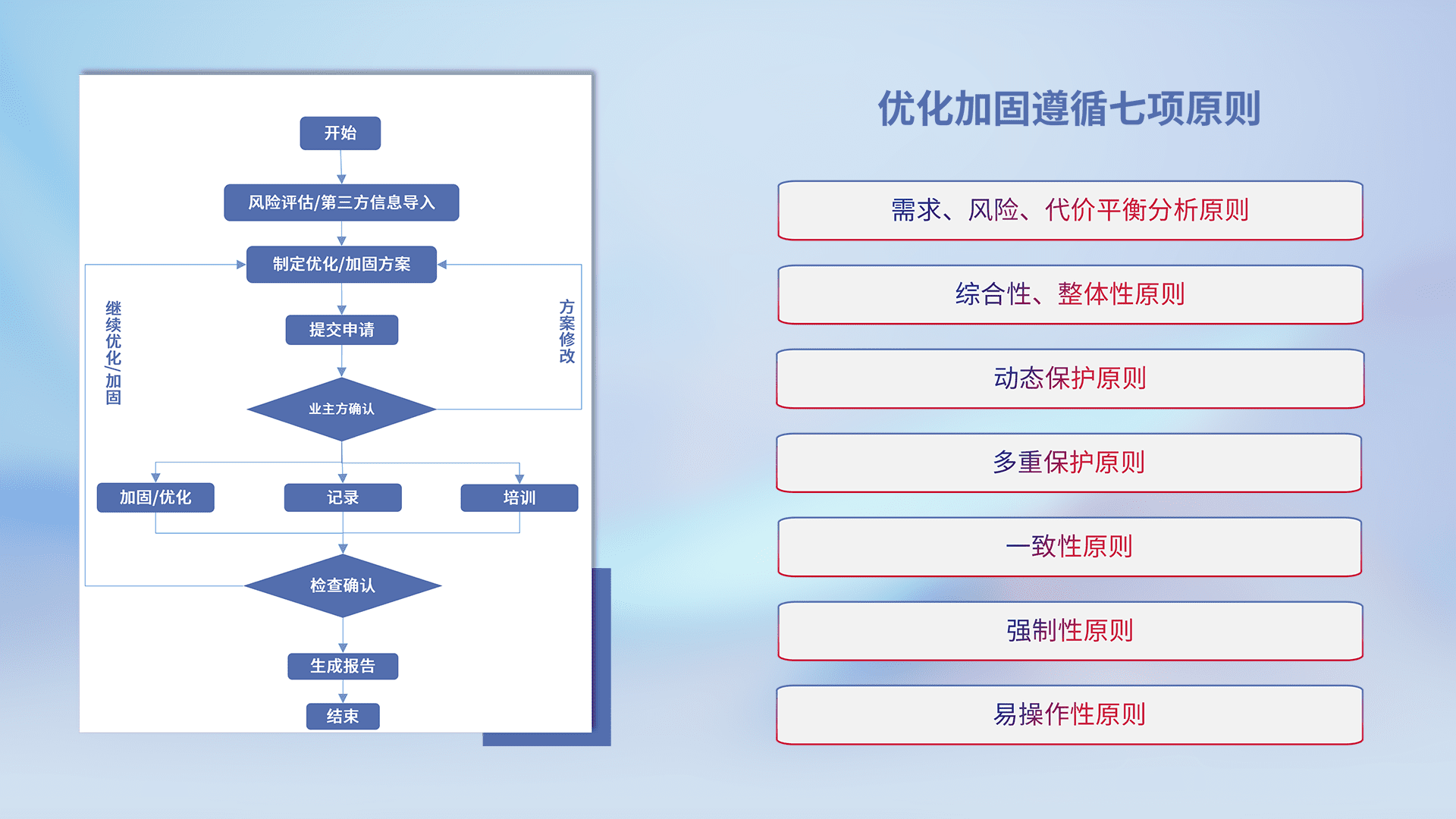 最大程度利用现有资产,,,,对评估发现的问题进行封堵与整改,,,防止漏洞被利用,,,,提升整体网络安全性,,,为客户带来高标准的优化加固服务。。。。
