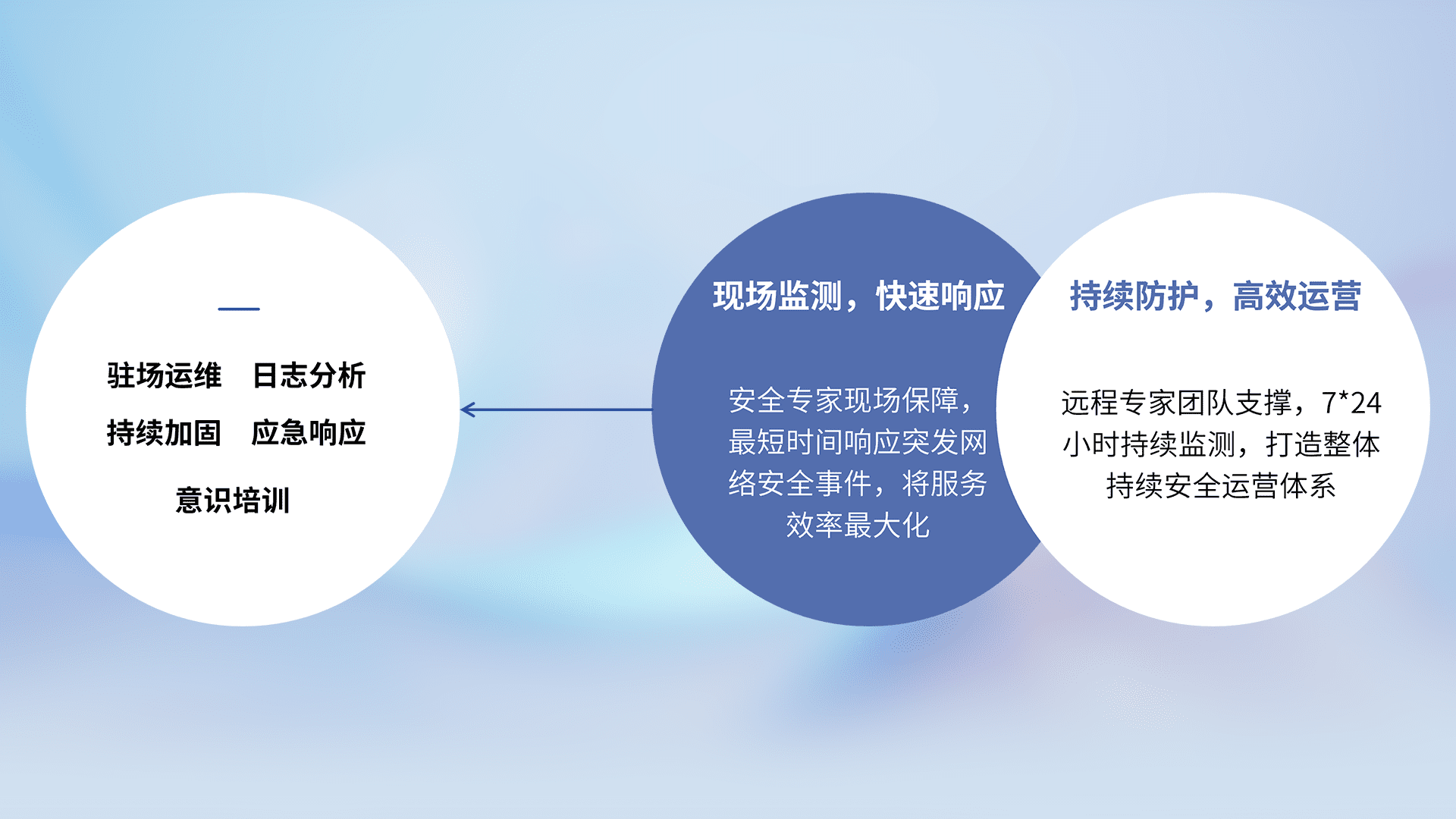 针对客户行业特性,,,,提供专属的一站式安全管理服务,,,帮助客户全面感知网络空间威胁,,,通过安全专家的线上、、线下防护支持,,,,实现风险闭环,,,,将安全保障常态化,,,为客户打造常态化安全运维运营服务。。。。